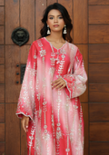 Red tie-dye cut dana embroidered kaftan featuring a graceful round neckline adorned with tassel details and full sleeves. The neckline is accentuated with delicate bead finishing, while the sleeve hems showcase intricate cutwork and bead detailing — creating a perfect blend of contemporary style and timeless elegance.